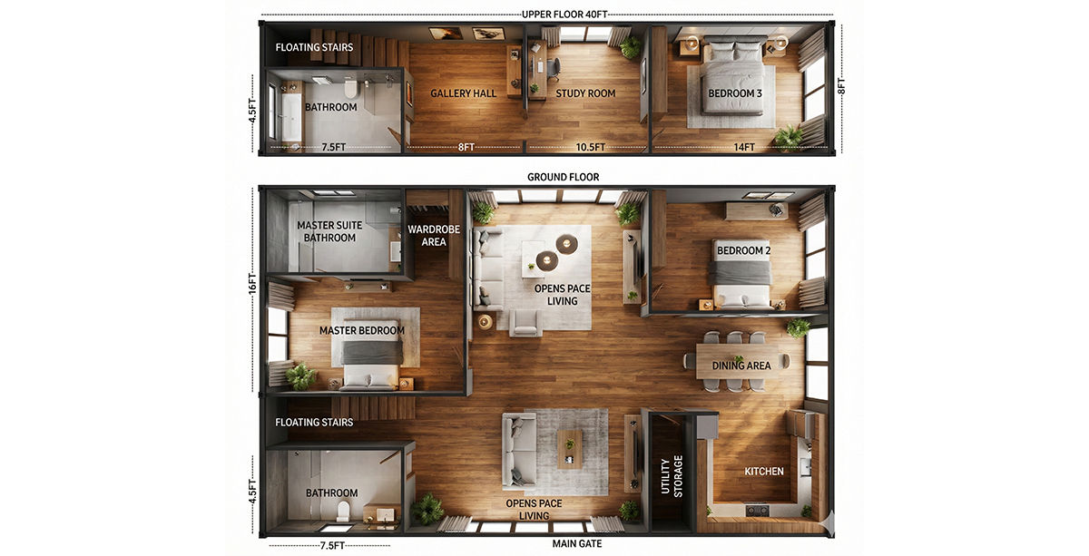4 × 40 FT Container Home (G+1 – Premium Family Model) — Full Description